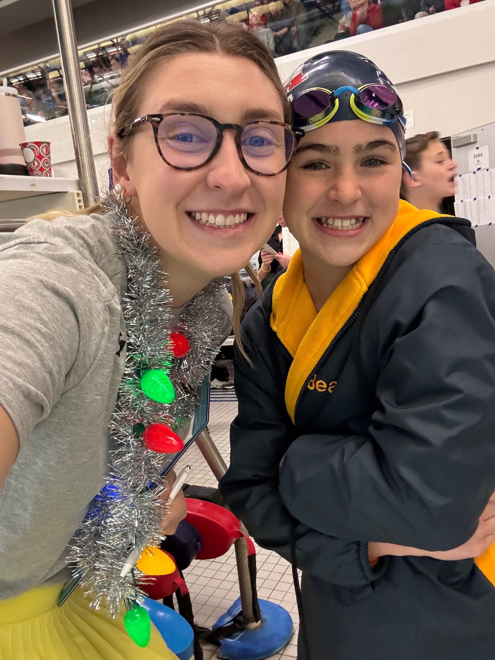I love being a coach because I like helping kids reach their full potential, see them succeed, and develop a love for swimming. Outside of coaching, I work in a school as a parapro, I love to read in my free time, and spend time with my family, friends, and cat.